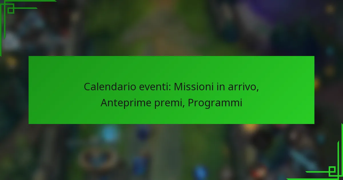 Calendario eventi: Missioni in arrivo, Anteprime premi, Programmi